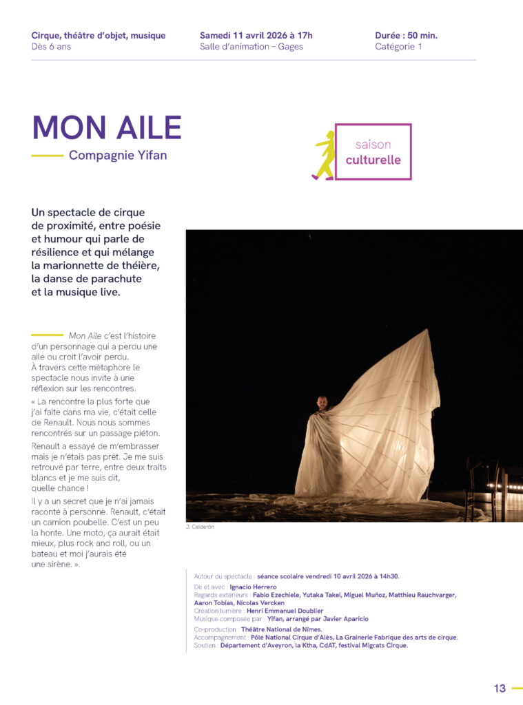 MON AILE • Cirque, théâtre d’objet, musique • Dès 6 ans • GAGES