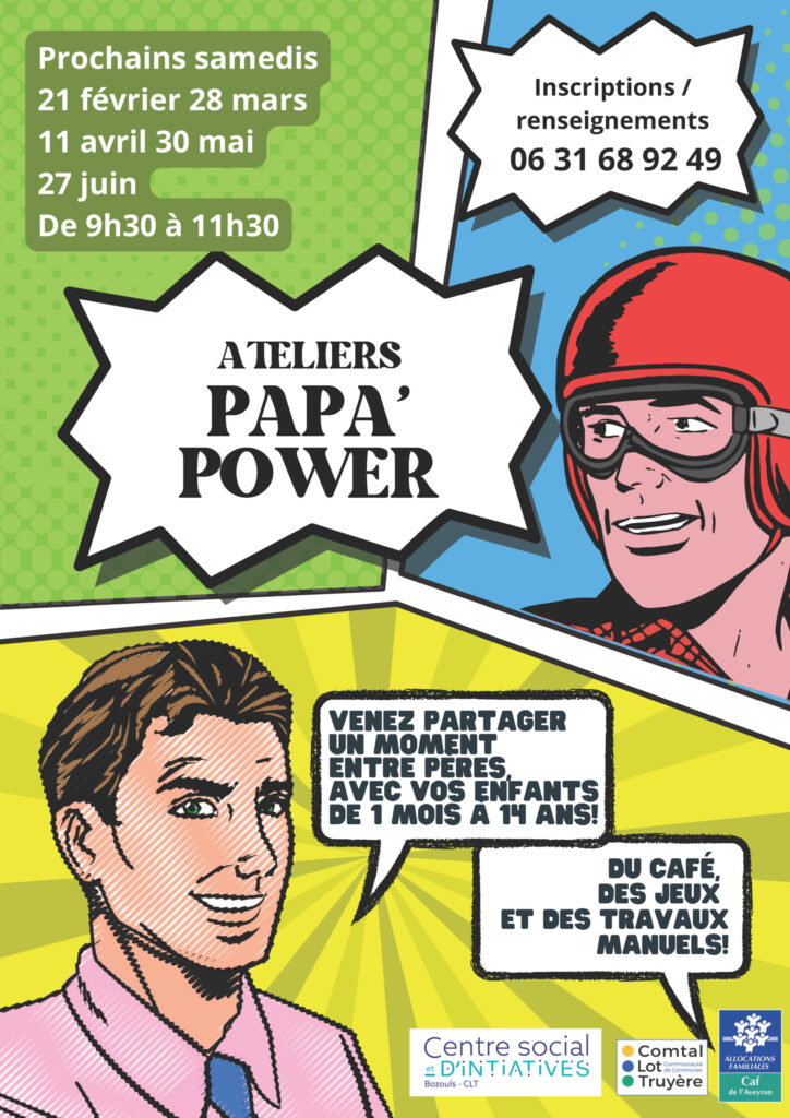 > Les Papas’Power: une fois par mois le samedi matin les papas peuvent se retrouver avec leurs enfants dans un espace adapté pour créer, jouer, échanger et boire un café!